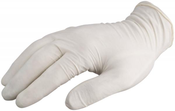 Disposable latex gloves for food handling, also ideal for household and laboratory AQL 1.5 powder-free High stretchability and excellent tactile feel due to thin latex Waterproof and tear-resistant Available in 4 sizes Glove dispenser 100 pcs. Length: 240 mm The glove complies with PPE category 3 with protection against chemical hazards, the disposable latex glove Plus is particularly suitable for use in laboratories and it meets the requirements of the EN 374 series of standards against hazardous chemicals and microorganisms. * Food safe * Compliant with regulation MDR (EU) 2017/745, EN 455, PPE regulation (EU) 2016/425, EN ISO 21420, EN 374 * AQL 1.5 * PPE category III: waterproof protective gloves against chemical hazards * Medical device class I