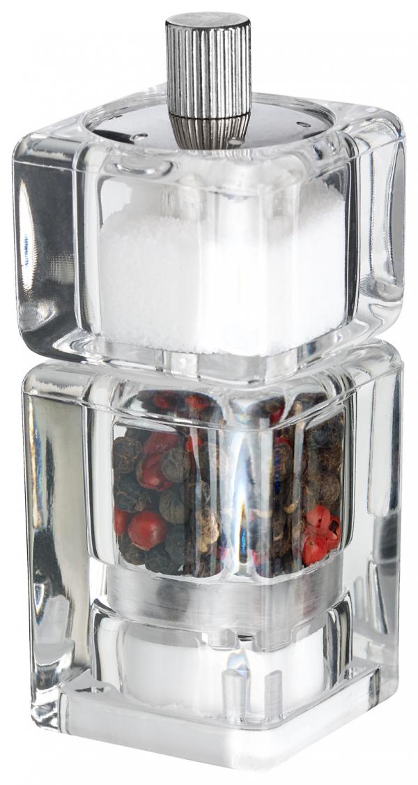 Pepper mill with salt shaker Alma The pepper mill with salt shaker Alma immediately catches one` s eye due to its clever design. The pepper mill and salt shaker are combined here in a practical spice shaker. In the lower acrylic glass chamber are the peppercorns, which are freshly ground over the food with the help of the ceramic grinding mechanism. The salt is filled into the upper chamber and scattered over the food by your guests holding the utensil upside down. * pepper mill and salt shaker in one * handy size, smart construction * uncomplicated handling * space-saving, as two functions are combined in one container * housing made of transparent acrylic glass * ceramic pepper mill grinder (lifetime guarantee*) Who needs separate pepper and salt shakers when you can have both in one practical utensil? The Alma pepper mill with integrated salt shaker is particularly practical for small tables where there is little space for accessories. * The guarantee can only be redeemed with the original invoice. The guarantee only applies to professional handling and normal use.