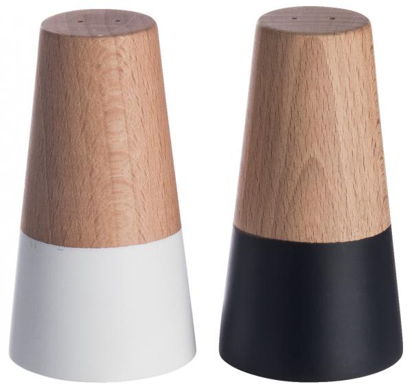 Those who prefer modern and minimalist forms will definitely enjoy the spreader set >>Kayu<<. The salt and pepper shaker set is made of fine beech wood. The salt shaker is partially white lacquered and the pepper shaker is partially black lacquered in order to quickly make the color of the respective contents visible to the eye.