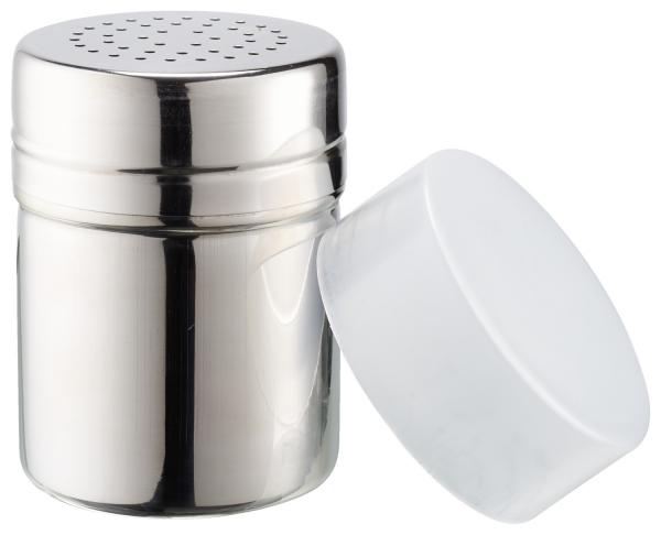 Durable stainless steel spice shakers. With sieve attachment and plastic cap for sealing. Sieve attachment with 2-mm holes. Ideal for spices. Dishwasher-safe.