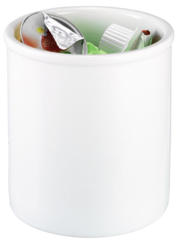 Robust, stable waste bin made of white porcelain. Dishwasher safe.