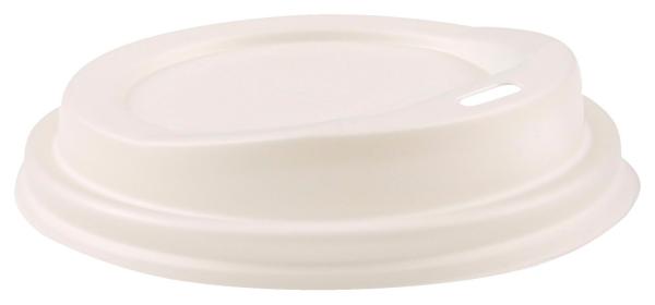 This disposable lid is particularly environmentally friendly as it is made from renewable raw materials. The disposable lid is completely compostable and is made of C-PLA. C-PLA is also colloquially called organic plastic. C-PLA consists of corn starch. The organic lids made of C-PLA are therefore ideal to cover hot drinks. They withstand temperatures up to 90°C well.