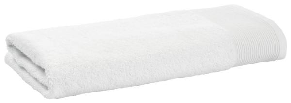 The towels with a silky gloss, velvety grip and flowing drape are pure luxury for your guests. The soft, fluffy fabric contains viscose, which is extracted from bamboo fibers. Due to the characteristics of the renewable source, the terry can absorb particularly large amounts of water. The towels are provided with a woven structure in a pleated look. Material: 60% cotton, 40% viscose. 60°C washable. Weight approx. 600 g/sqm.