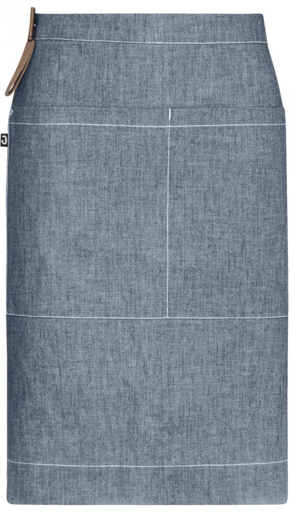 100% cotton. 255 g/m². 40°C wash. Practical apron with elastic straps. The size of the color-contrasting elastic waistband can be adjusted using buttons. Includes a tea towel loop and a 2-compartment pocket that can accommodate a mini tablet. The elastic straps can be easily washed alongside the apron. Hard-wearing and easy-care.
