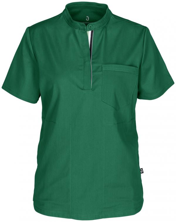 Modern women`s tunic in polo shirt look made of skin-friendly and breathable Tencel polyester fabric, slightly cooling on the skin. Easy to put on and take off and particularly comfortable to wear thanks to stretch content. At the same time, Tencel™ cellulose fibers of botanical origin define a new standard in sustainability and natural comfort. Slip-on jacket with short sleeves, modern stand-up collar and polo button placket with subtly colored ribbed band as a highlight. With generous side pockets and a breast pocket. Slightly rounded hem and side slits. Straight, discreetly waisted cut. Embroidery for personalization possible. Lyocell 69% (Tencel™)/ 31% PES, 205 g/m². 60° wash. Back length: 65 cm in size S.