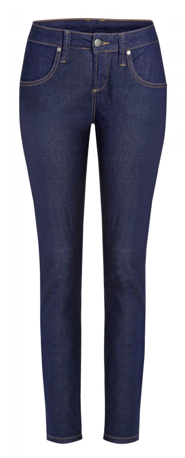 Jeans for women made of real denim with narrow leg, insertion pockets on the side, 2 patched back pockets, 6 belt loops, zipper in the front center. Material: Real denim made of 98% cotton, 2% spandex. 60 °C wash. Inseam length women: 81 cm at size 36.