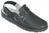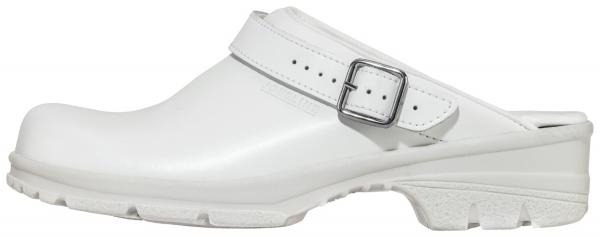 Our basic clog for men and women! Complies with the standard EN ISO 20347:2012. Upper: 100% leather, lining: Synthetic fiber. Size can be adjusted using the heel strap. The non-slip sole complies with the SRC standard. It ensures optimal grip on wet or slippery floors, as well as being anti-static and resistant to oils and fats. Available in white or black. Supplied with a shoe bag.