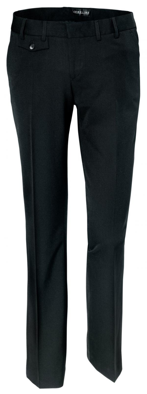 Ladies trousers Calla The ladies trousers Calla is an elegant pants that inspires. The classic black women`s pants with straight leg is equipped with a decorative pleats. The stylish pants have a hidden zipper at the front and belt loops as well as an attached decorative flap. Two side pockets and two buttock welt pockets with button provide storage space. The wrinkle-free material made of polyester wool blend with stretch is extremely skin-friendly and comfortable to wear. * black trousers for women * straight cut with pleats * Slit pockets at the side, piped pockets at the bottom * with practical belt loops and decorative front flap * elegant design, ideal for fine dining * high wearing comfort * wrinkle-free and durable material made from 53% polyester, 43% wool, 4% spandex * easy to clean, wash at 40° C * Elastic band in the waistband prevents the blouses from slipping out No matter how stressy the service is, the Calla women`s trousers are perfect and always look good. The elegant trousers for women in the upscale and classic gastronomy provides a convincing look that exudes professionalism and service. The timeless elegant trousers are extremely easy-care, wrinkle-free and washable at 40° C in normal laundry.