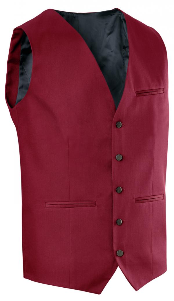 Men`s vest Bistro The Bistro men`s vest helps your service staff make a grand entrance. The men`s vest with chic button placket scores with a classic design that makes all the difference. Two piped pockets round out the stylish look. With this durable yet comfortable restaurant vest, your staff will not only look professional, they will also feel completely comfortable. This is also felt by your guests. * Bistro vest for men * Classic straight cut * With adjustable back strap for width adjustment at the waist * Equipped with two piped pockets and a button placket * Available in several colors * Different sizes selectable * Back length men: 66 cm for size 50 * Material made of durable blended fabric, 65% polyester and 35% cotton * Easy to clean at 40°C in the washing machine The timeless vest can be perfectly combined with classic shirts and rounds off the service outfit optimally. At the same time, the service vest protects against soiling that occurs daily on the job and is uncomplicated to clean and maintain. Well and comfortably dressed, your service staff forms thanks to this men`s vest for the hospitality industry not only visually a team, but also feels so.