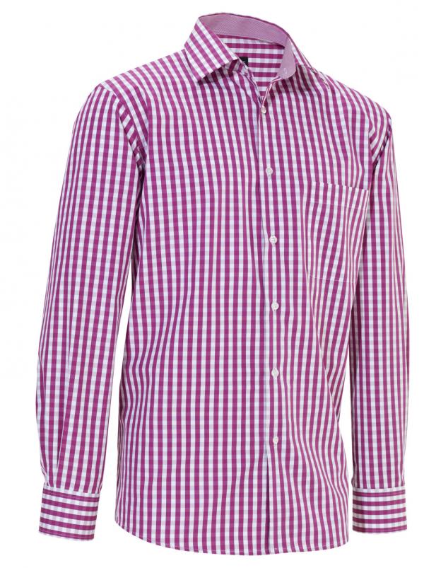 High-quality men`s shirt with chest pocket and color matching vichy check on collar and cuffs. Material: 100% cotton. 40°C wash. Back length: 80 cm at size 39/40.