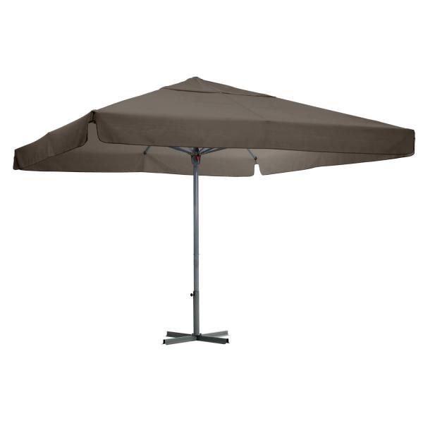Profesionalni veliki suncobran sa izuzetno stabilnim aluminijumskim okvirom. Okvir je praškasto lakiran u 3 boje. Stub Ø 60 mm i 8 ojačanih nosača (18x28 mm) daju potrebnu stabilnost. UV otporna, lagana i izuzetno vodootporna navlaka sa 230 g/m2 poliestera pruža idealnu zaštitu od topline i UV zraka. Integrisani klizni sistem je podržan oprugom unutar stuba. Plastični poklopci na krajevima podupirača štite oblogu. Suncobran mora biti zatvoren pri brzini vjetra od 7 m/s. Molimo Vas da istovremeno naručite: držač onsovu za postolje Ø 60 mm, šifra 10070533.