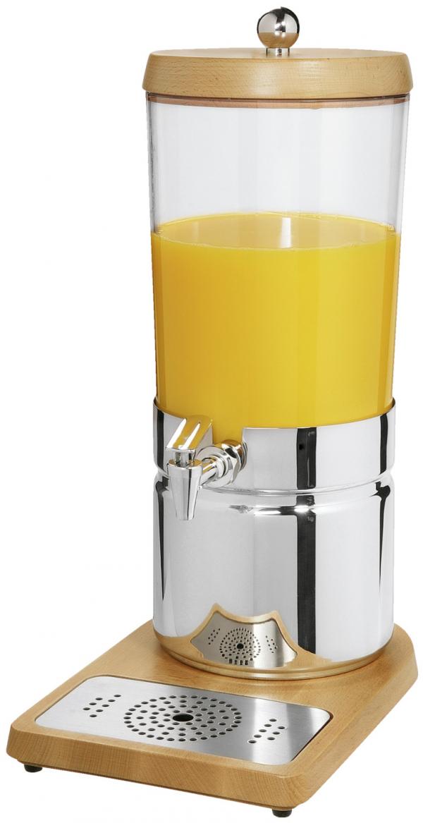 Dekorativni dispenzer za sok od bukovog drveta, sa akrilnom posudom, hromiranim metalnim delovima. Nije pogodno za pranje u mašini za sudove. Dostava uklj. hladni paket.