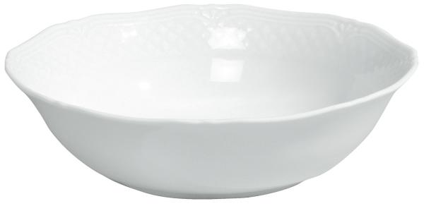 Bijela porcelanska posuda. Sa klasičnim elegantnim reljefom. Može se prati u mašini za suđe i može se koristiti u mikrotalasnoj pećnici.
