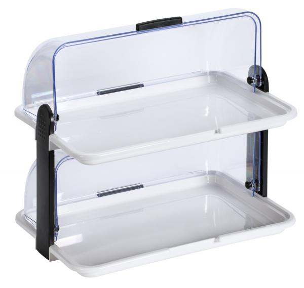 Praktični buffet displej sa rolltop poklopcem od visokokvalitetne plastike. Može se otvoriti sa obe strane. Pogodno za mašinu za pranje sudova. Otporan na temperaturu od -10 °C do +70 °C.