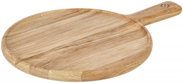 Nauljena ploča za hranu od punog hrasta. Sa ručkom za nošenje i udubljenjem za lakše rukovanje. Handcrafted. Easi-care. Nije pogodno za mašinu za pranje sudova. Dimenzije bez drške.