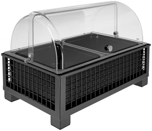 Set se sastoji od složene buffet kutije visoke izrađene od čelika obloženog prahom, osnovnog kontejnera izrađenog od visokog...kvalitetna plastika sa toplotnom otpornošću do 70°C, odgovarajući hladni paket napravljen od polietilena, 2x crn, 10 cm dubine.