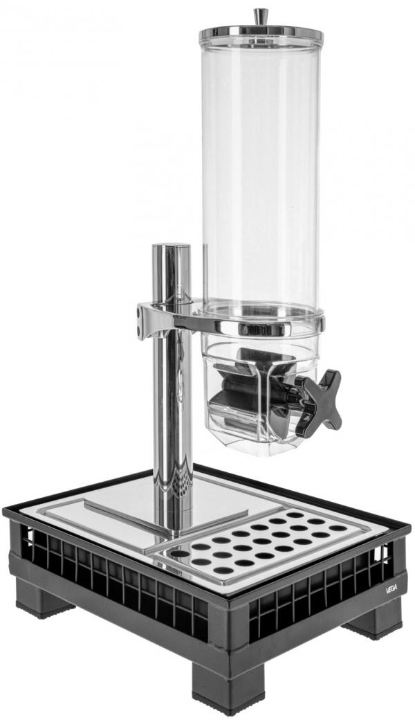 Set se sastoji od složene kutije za bife ravne 1/2 napravljene od čelika obloženog prahom, osnovnog kontejnera izrađenog od visokokvalitetne plastike sa toplotnom otpornošću do 70°C i dispenzera Hamshire singla napravljenog od posebno otpornog na lomljenje i ogrebotine.rezistentni trican (bisfenol A-free). Kapacitet 4 litra.