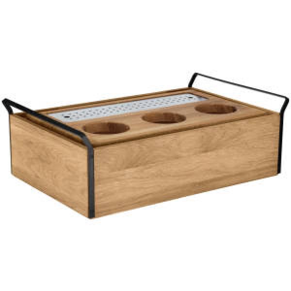 Esino dekanterska stanica se sastoji od osnovne kutije visoke 1/1 napravljene od hrastovog drveta, donje posude napravljene od visokokvalitetne plastike otporne na toplotu do 70°C, odgovarajućeg polietilenskog hladnog paketa, poklopca dekantera od punog hrasta, poklopca za kapanje od nerđajućeg čelika 18/10 i plastičnog poklopca za kapanje. Poklopac za kapanje je pogodan za pranje u mašini za pranje sudova, svi ostali delovi nisu.