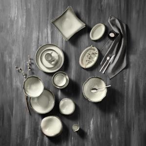 The milk jug from the Nagoya series is an impressive highlight for any sophisticated table presentation. The cream-coloured surface is accentuated by a fine black rim, which is reminiscent of filigree mesh structures and gives the piece a special depth. Ideal as a stylish serving dish for special occasions - either as a classic milk jug or as a serving dish for sauces.