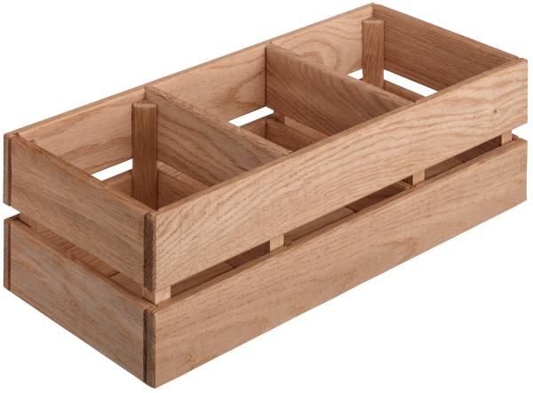 Drvena kutija za unutrašnju upotrebu bez ručke i dva pregrada od punog hrastovog drveta, prirodnog drveta. Bezbjedna hrana. Stackable. Nije pogodno za mašinu za pranje sudova.