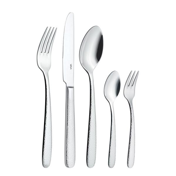 Set se sastoji od šest kašika, viljuški, noževa za sto, kašika za kafu i viljuški za kolače. Može se prati u mašini za posuđe.