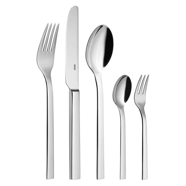 Set se sastoji od šest kašika, viljuški, noževa za sto, kašika za kafu i viljuški za kolače. Može se prati u mašini za pranje posuđe.