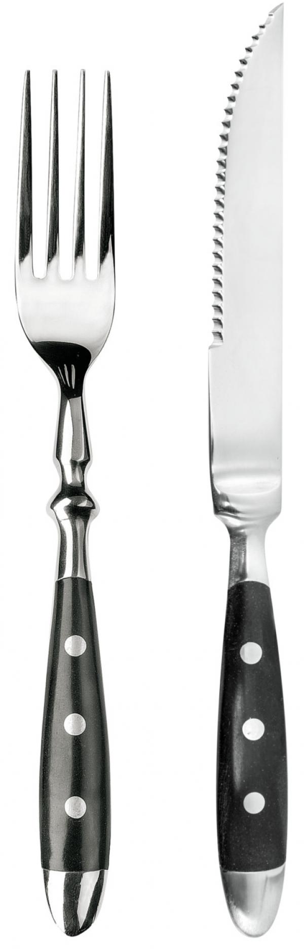 Set se sastoji od dvanaest viljuški i noževa za stek.
