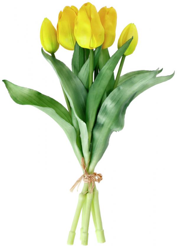 Gomila lala realističnog izgleda, koja se sastoji od 5 lala sa listovima. Visina pribl. 28 cm.