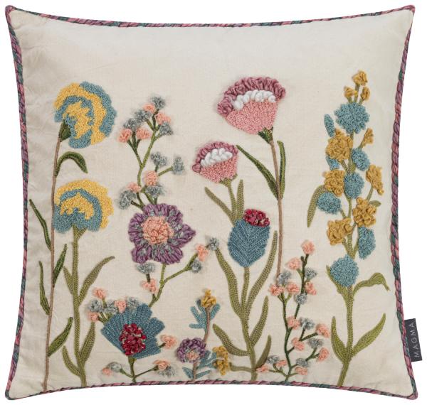 Jastučnica sa detaljnim cvjetnim vezom na prednjoj strani i mentol zelenim leđima. Sa finim cevovodnim granicama. Praktičan zatvarač za jednostavno uklanjanje i pokrivanje. Isporučuje se bez punjenja. 80% pamuk, 10% viskoza, 10% poliester. Pranje ruku. 494 g/m.