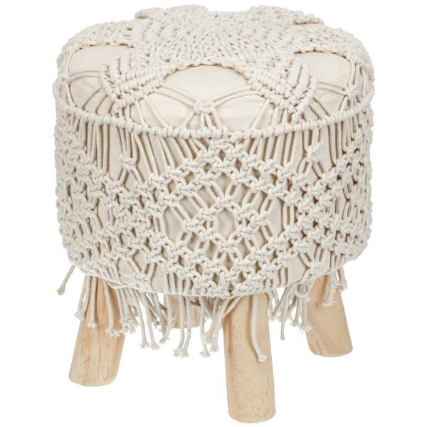 Dekorativna stolica u modernom macrame stilu napravljenom od pamuka i pravog drveta.