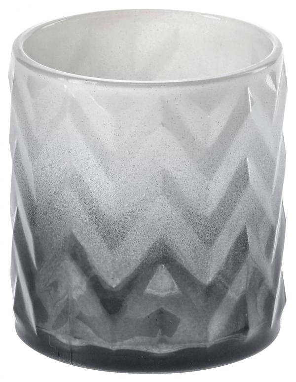 Svijećnjak napravljen od lakiranog stakla sa elegantnim gradijentom boja i reljefastim detaljima.