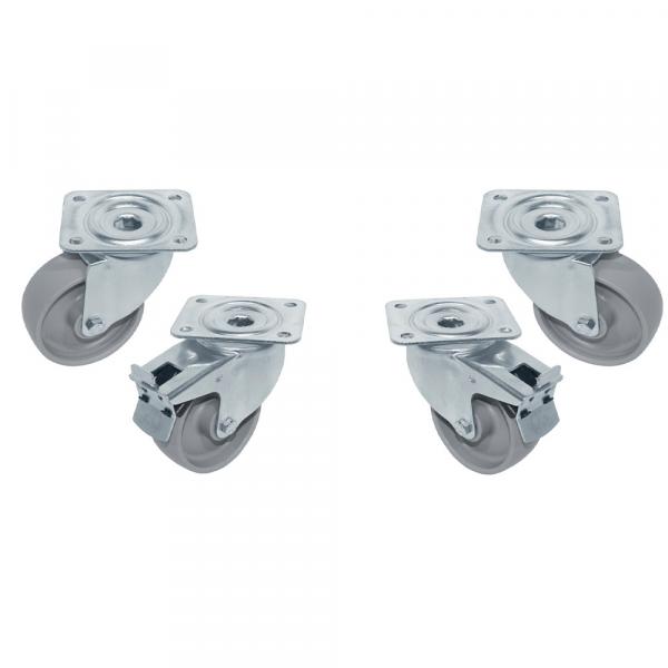 Komplet od 4 "pocinkovana" točkića, okretni, 2 sa kočnicama