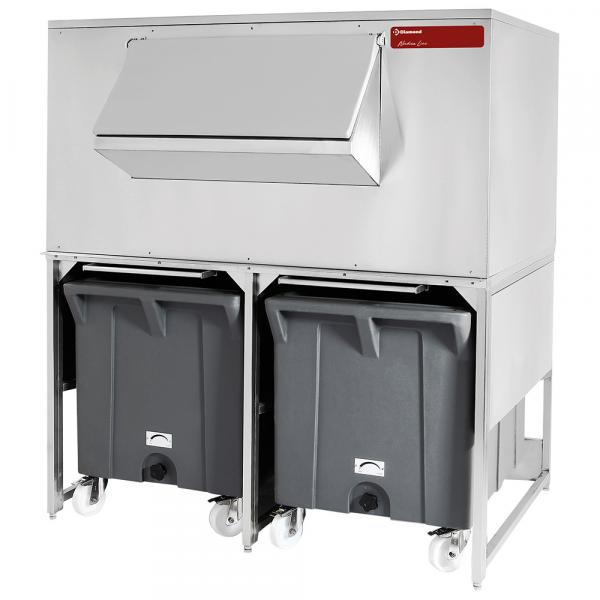 Ram od nerđajućeg čelika AISI 304. Srednji kontejner sa servisnim vratima za privremeno skladištenje (300 kg) kada kolica nisu na mestu. Kolica napravljena od ABS plastike visoke gustine za dugotrajno očuvanje leda.