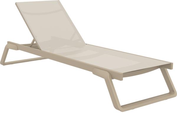 Ležaljka od izdržljivog polipropilena otpornog na vremenske uslove. Ležeća površina od sintetičke tkanine koja diše. Sa točkovima. Mogućnost slaganja do četiri ležaljke. Naslon za leđa podesiv u pet pozicija. Pogodno za upotrebu na otvorenom.