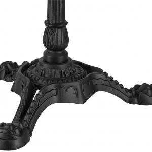 The timeless Vintage table base combines classic café design with robust stability. Made from solid, powder-coated cast iron, it impresses with its durability. Ideal for restaurants, cafés or bistros - this table frame is the perfect choice for anyone who appreciates functionality and timeless charm. Vintage table pedestal - sturdy and easy to clean, ideal for indoor and outdoor use. Designed in Art Nouveau style, the table base fits perfectly into a cosy café ambience. The solid cast iron ensures high stability, while the black powder coating offers additional protection. The frame is suitable for round table tops up to Ø 80 cm or for square table tops up to 80 x 80 cm; the table top should not exceed a maximum net weight of 30 kg. Delivery is disassembled, but assembly is straightforward thanks to the fixing material supplied. Three stabilisers with floor levelling screws also ensure a secure hold, even on uneven floors. Please note: Full stability and stability against tipping is only guaranteed if the table is assembled correctly in combination with the recommended table tops. Advantages & features: * Solid cast iron table frame in black - robust, stable & durable * Retro café house design in Art Nouveau style - perfect for bistros & cafés and restaurants * For indoor & outdoor use: ideal as catering furniture in restaurants, cafés or hotels * Suitable for round table tops up to Ø 80 cm / 80x80 cm * Simple assembly, fixing material included in the scope of delivery