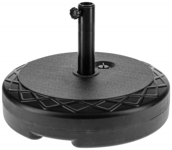 Okrugli štand za sunčanje pogodan za sunčane nijanse prečnika 38 ili 48 mm, napunjene vodom ili peskom. Kapacitet 27 l (ukupna težina sa vodom: 30,0 kg). Ukupna visina: 38,0 cm, visina baze: 15,0 cm. Isporučeno djelomično sastavljeno - jednostavno zavrnite rukav u bazu.