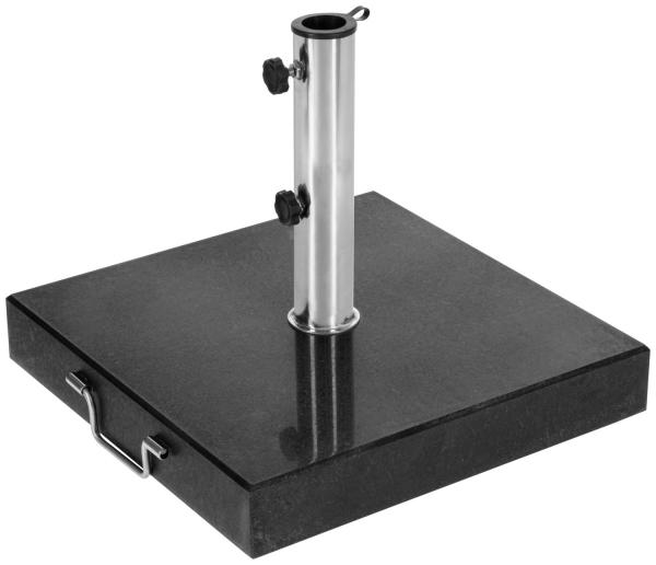 Granitna ploča je jednostavan i vizuelno atraktivan način da postavite svoj sucnobran na otvorenom. Postolje nalazi se na kvadratnoj ploči od čvrstog granitnog kamena, što pruža najbolju stabilnost. Pogodno je za suncobrane prečnika 3 metra i veličine 3x3 metra. Sa adapterom se može koristiti do prečnika otvora cijevi/tijela do 4,8 cm. Za lakši transport, postolje ima praktičnu dršku i dva plastična točka. Granitna ploča je otporma na vremenske uslove i UV otporna.