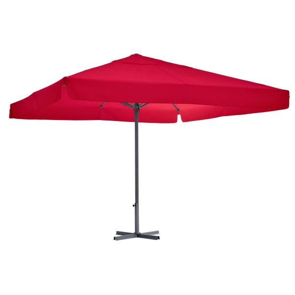 Profesionalni veliki suncobran sa izuzetno stabilnim aluminijumskim okvirom. Okvir je praškasto lakiran u 3 boje. Stub Ø 60 mm i 8 ojačanih nosača (18x28 mm) daju potrebnu stabilnost. UV otporna, lagana i izuzetno vodootporna navlaka sa 230 g/m2 poliestera pruža idealnu zaštitu od topline i UV zraka. Integrisani klizni sistem je podržan oprugom unutar stuba. Plastični poklopci na krajevima podupirača štite oblogu. Suncobran mora biti zatvoren pri brzini vjetra od 7 m/s. Molimo Vas da istovremeno naručite: držač onsovu za postolje Ø 60 mm, šifra 10070533.