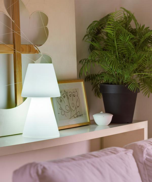 LED stona lampa od izdržljive plastike sa kablovskim priključkom.Pogodan za unutrašnju i spoljašnju upotrebu i otporan na ekstremne temperature i UV zrake. Hladna bela boja svetla (6000 K), lumeni: 600 lm, integrisana LED.