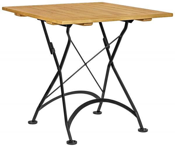 Sklopivi pivski baštenski sto od pocinkovanog i praškastog čeličnog okvira, stolna ploča od lakiranog kestenovog drveta. Debljina ploče stola 2 cm. Uključujući plastične klizače za zaštitu poda. Sklopivi, otporni na vremenske prilike i izuzetno robusni. Pogodno za upotrebu na otvorenom. Isporuka je sastavljena. Odgovarajuće stolice se mogu naručiti istovremeno.