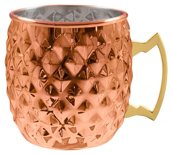 Sa praktičnom ručkom. U dijamantskom dizajnu ili glatkom. Obložen bakrom, stoga nije pogodan za mašine za pranje suđa. Unutrašnjost: brušeni nerđajući čelik!