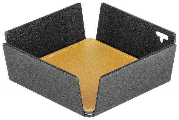 Decorative tray made of stainless metal with two-tone interior cover in sturdy imitation leather. Interior cover reversible, water resistant and customizable.