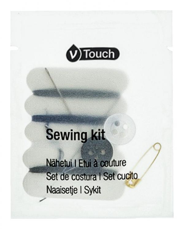 Sa osnovnim alatima za šivanje kao što su dugmad, sigurnosna igla, igle za šivenje i konac. Idealno za upotrebu u hotelima i pansionima. Uz bezvremensko jednostavno pakovanje od folije, V-Touch serija dodataka može se savršeno kombinirati sa svim kozmetičkim serijama VEGA. V-Touch set za šivenje dobijate u praktičnom pakovanju od 250 komada, sa svakim pojedinačno pakiranim.