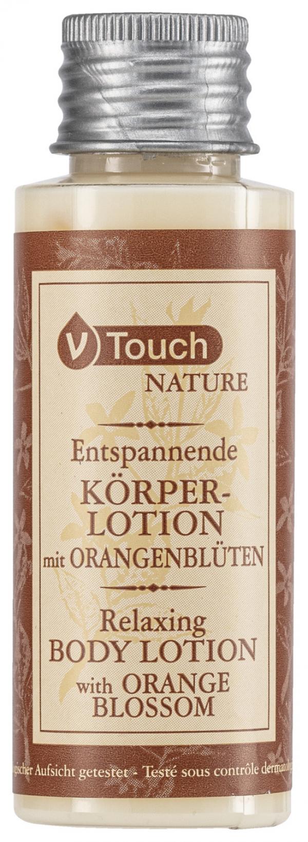 V-Touch Nature mirisni losion za tijelo za opuštanje i njegu kože nakon tuširanja ili kupanja. Ovaj losion za tijelo se lako nanosi i obogaćen je ekstraktima cvijeta narandže za optimalnu ishranu. Ostavlja vašu kožu glatkom i mekom. Pogodno za sve tipove kože. Sa izuzetnim mirisima limuna, bergamota, mente, đurđevka, bora, mošusa i pačulija. Dermatološki testiran i pH neutralan. Isporučuje se u bocama od 40 ml sa zatvaračem na navoj. Ovaj losion za tijelo nadopunjuje seriju hotelske kozmetike V-Touch Nature; naručite odgovarajući V-Touch Nature gel za kupanje/tuširanje u isto vrijeme.
