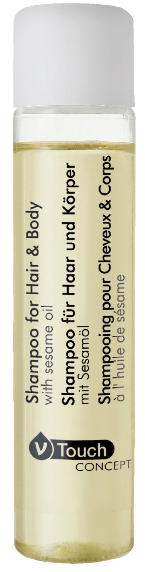 Šampon za njegu V-Touch Concept pruža kvalitetnu mirisnu njegu kose. Vaši gosti će cijeniti hranljiva svojstva susamovog ulja. Svjež, nježan miris citrusa i cvijeća održava kosu svježom dugo vremena.
