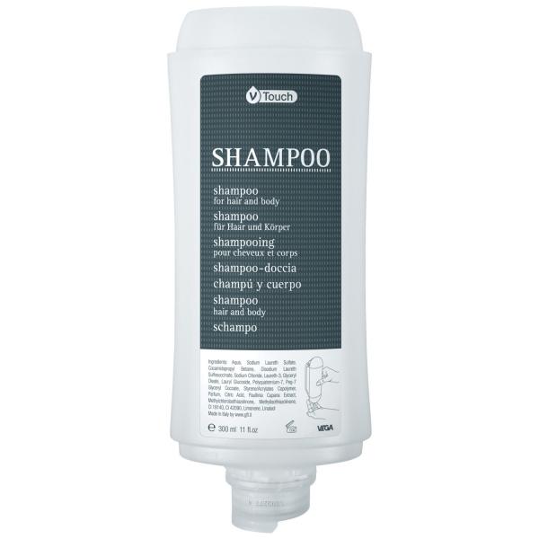 Sistem za doziranje V-Touch Silver 2in1 šampon i gel za tuširanje šarmira vaše goste harmoničnom svežinom. Šampon za njegu u praktičnoj boci za doziranje može se lako prikačiti na odgovarajući sistem dozatora i može se ukloniti laganim pritiskom. Ovaj 2in1 gel za tuširanje dizajniran je za blago čišćenje kože i kose. Odiše delikatnim mirisom citrusa i izuzetnih cvetova. Boca ima moderan dizajn i uklapa se u svaki ambijent.