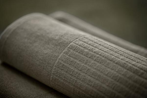 ## Twisted terry towelling Alassio- Durable and absorbent for the wellness area The Alassio bath towel is a twisted terry towelling made of 100% cotton. It is the ideal choice for wellness, spa and hotel bathrooms. The simple checked weave combines an elegant look with high absorbency and durability. Natural colour tones and the 14 cm long plain weave on one side round off the attractive appearance. Thanks to the moderate grammage, cleaning costs are lower. Personalisation possible through weaving or embroidery. * High-quality twisted terry towelling made of 100% cotton * Weight approx. 450 g/m² - durable and absorbent * Woven in an attractive chequered look * 14 cm long plain weave on one side * Particularly suitable for wellness and spa areas, as well as hotel bathrooms * Lower energy costs due to moderate weight * Practical hanging on one of the short sides * High-quality workmanship - seamed with double seams Info: The product reaches its final size after three washes, as the fibres still contract during the first wash (shrinkage).