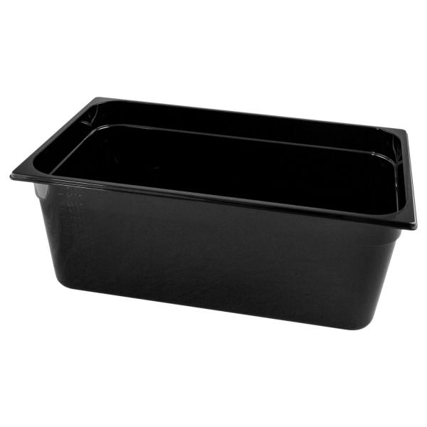 GN kontejner 1/1 od crnog Tritana (kopoliester) bezbednog za hranu. Otporan na udarce i može se slagati. Opseg primene od -40°C do +90°C. Sa litarskom skalom. Bez bisfenola A. Pogodno za mašinu za pranje sudova.