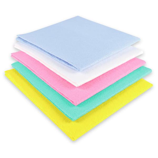 Višenamjenske krpe koje se mogu prati su izrađene od visokokvalitetnog flisa u tekstilnom materijalu. Flis je napravljen od mješavine viskoze (80%) i PP (20%) i vrlo je robustan i izdržljiv zahvaljujući težini od cca. 145 g/m2, perivo do 60°C. Visok procenat viskoze čini krpe za čišćenje veoma upijajućim i efikasnim kada je u pitanju brisanje vlage i prljavštine. Setovi se sastoje od 5 boja, koje se idealno mogu dodijeliti različitim radnim i higijenskim područjima. Higijenski sistem boja značajno smanjuje unakrsnu kontaminaciju i omogućava jasnu specifikaciju, npr. roza = WC/toaleti/pisoari, žuta = ostatak sanitarnog dijela, plava = hotelske sobe/kancelarije. Čak se i uređaji od nerđajućeg čelika održavaju higijenski čistim krpama za čišćenje — bez tragova i ostataka.