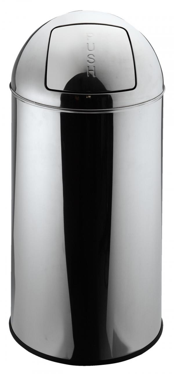 Čvrsta kanta za otpad napravljena od 18/0 nehrđajućeg čelika, nehrđajuća. Ogledalo ispolirano. Incl. pocinkovani unutrašnji kontejner sa ručkom za nošenje. Reflektivni poklopac pritiska sa otvorom cca 20x16cm. Otisak stopala sa gumenom usnom koja štiti pod. Sadržaj 50l.
